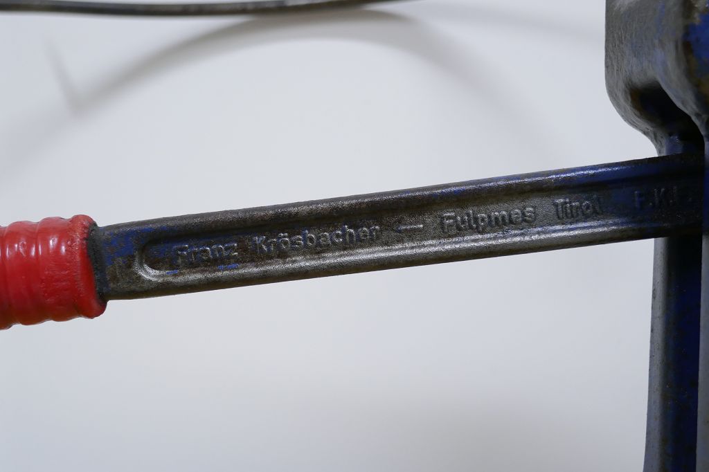 Gereinigt, Top Zustand – funktioniert super, mit dem vorgespannten Keil kann man den Dengeldruck verstellen, inklusive Sensenauflage, weitere Details siehe Fotos!