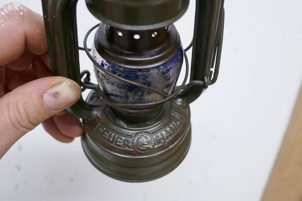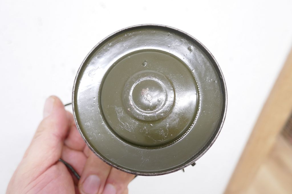 Leicht gereinigt, keine Löcher – Tank ist dicht, orig, Olivgrüne Farbe, am Glas ist auch eine Schrift zu erkennen, für Sammler, weitere Details siehe Fotos!