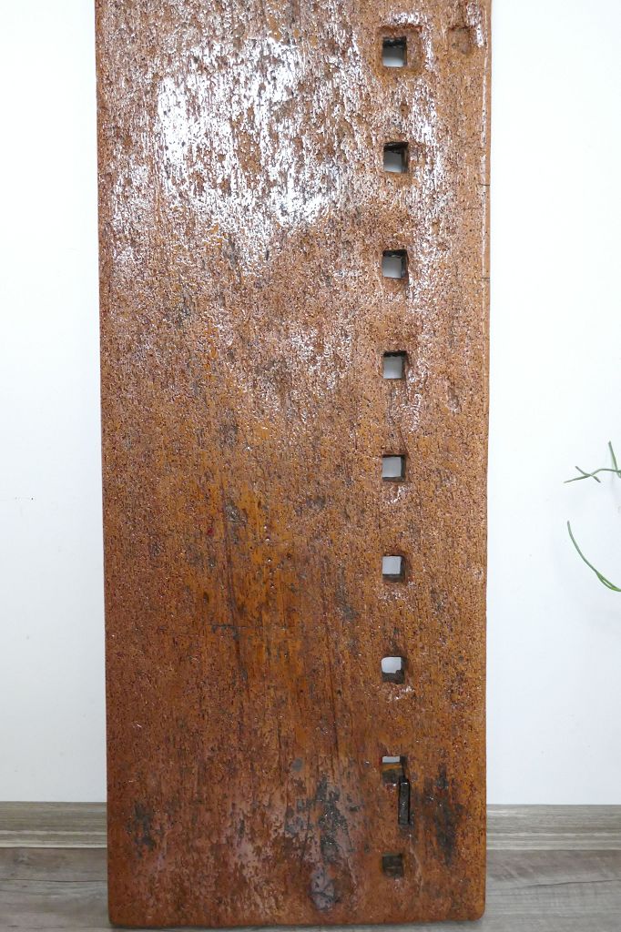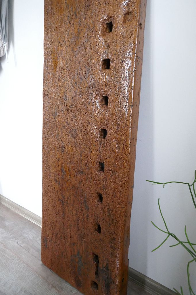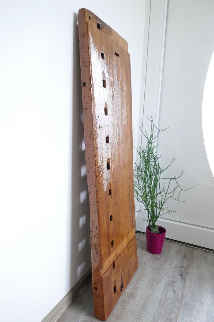 Uriges Erscheinungsbild, die Platte wurde mit Kunstharz lackiert somit ist diese absolut Wasserfest und kann im Badezimmer verwendet werden als Waschtisch, alles wurde auch Holzwurm behandelt, ein richtiges Unikat / Blickfang – für Allerlei schöne Zwecke Einsetzbar, weitere Details siehe Fotos !