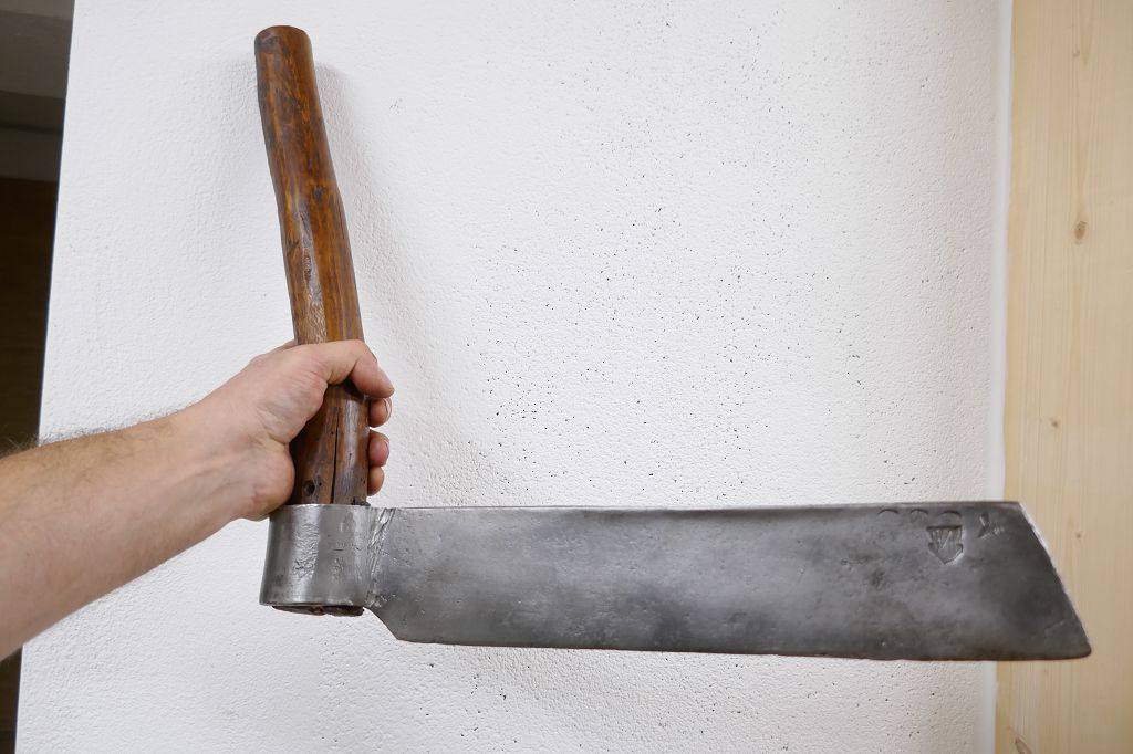 Schön aufbereitet, sehr große und schwere Ausführung mit Schmiedezeichen, gute alte Qualität, ideal zum Dachschindeln machen, bzw für Sammler, weitere Details siehe Fotos!