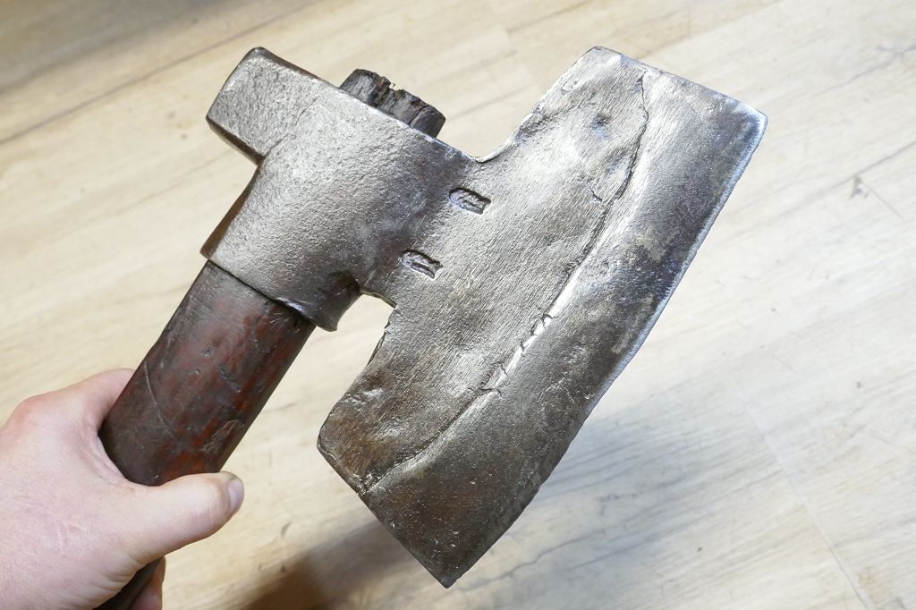 Größe: Gesamtlänge 86 cm, Gesamtbreite 20 cm, Schneide 21,5 cm, Gesamtgewicht 2,1 kg