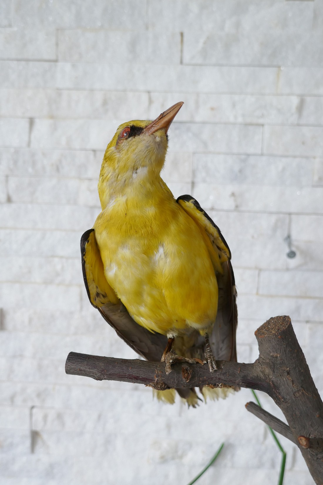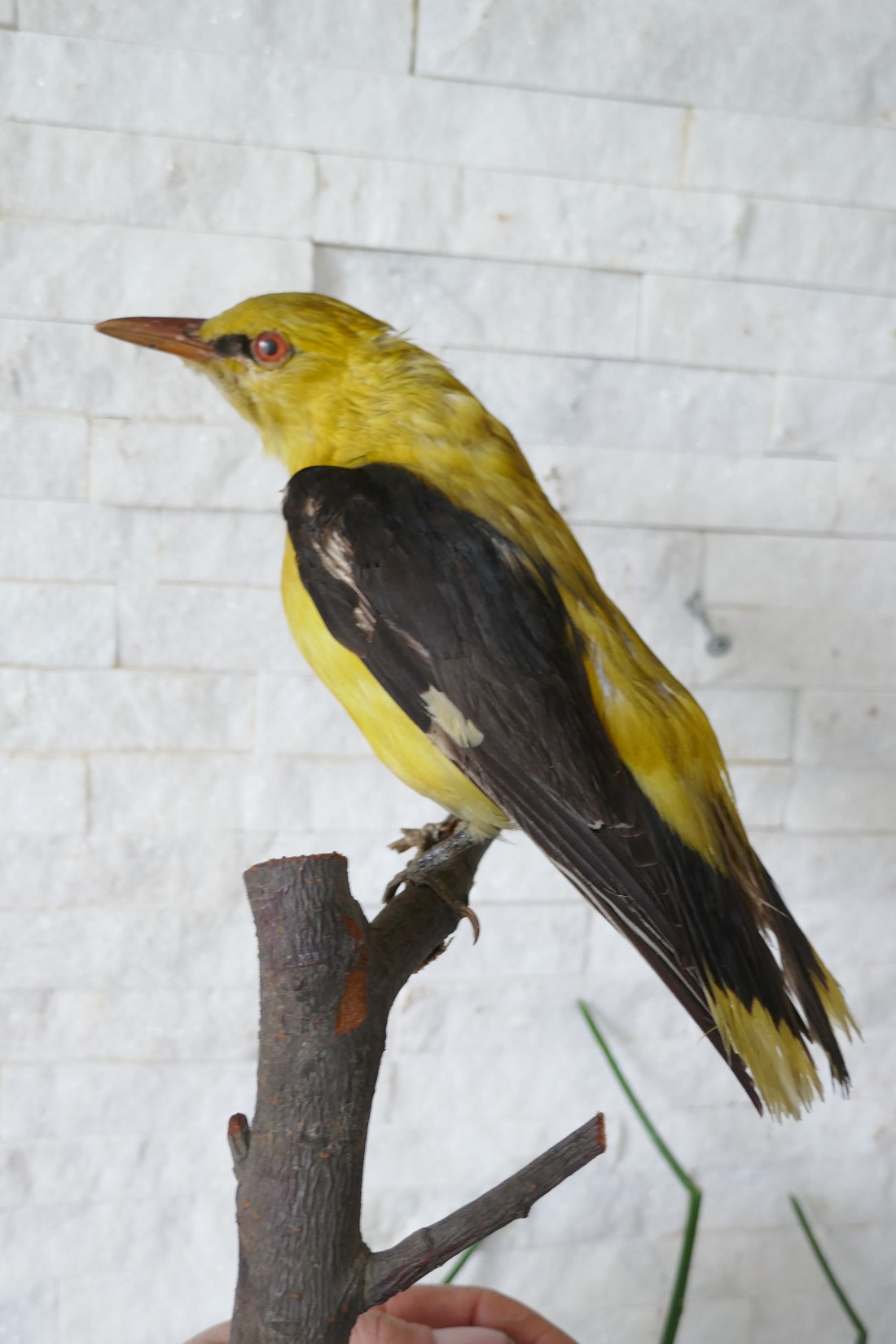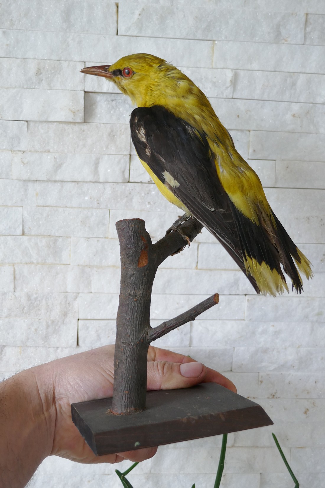 Altes Tierpräparat Pirol ausgestopft präpariert HKN